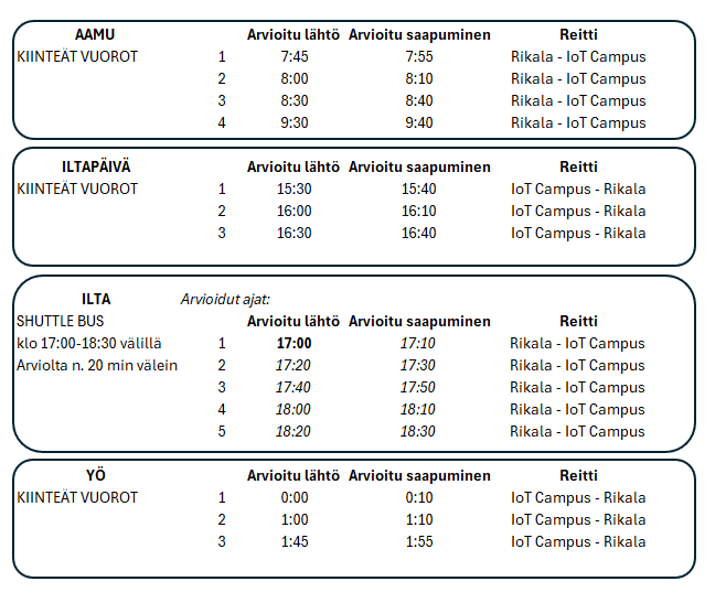 Hotellista järjestetään kuljetus Salo IoT Campukselle, jossa konferenssi ja gaala järjestetään.